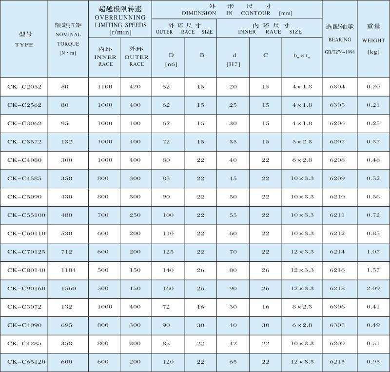 CK-C楔塊式單向離合器