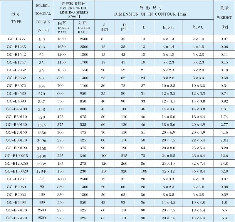 常州GC-B滾柱式單向離合器